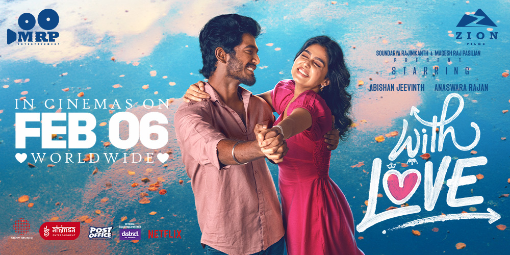 Film: With LoveProduced by Soundarya Rajinikanth and Magesh Raj PasilianStarring: Abishan Jeevinth, Anaswara Rajan, Harish Kumar, Kavya Anil, Sacchin Nachiappan,...